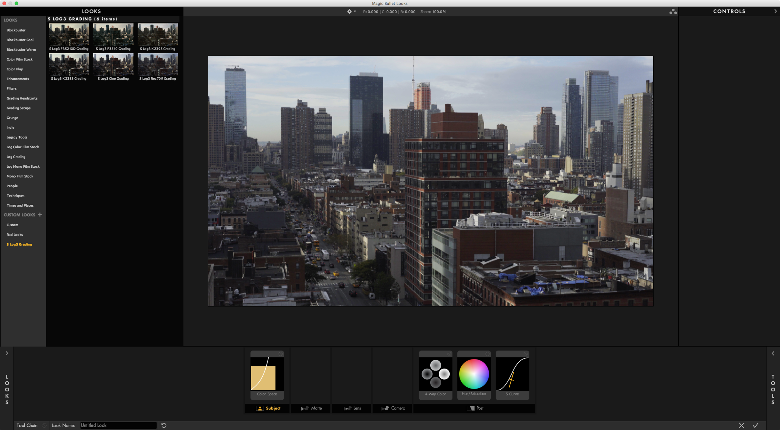 - The next time you launch Magic Bullet Looks, you should see the S Log3 Grading folder in the Looks Drawer.